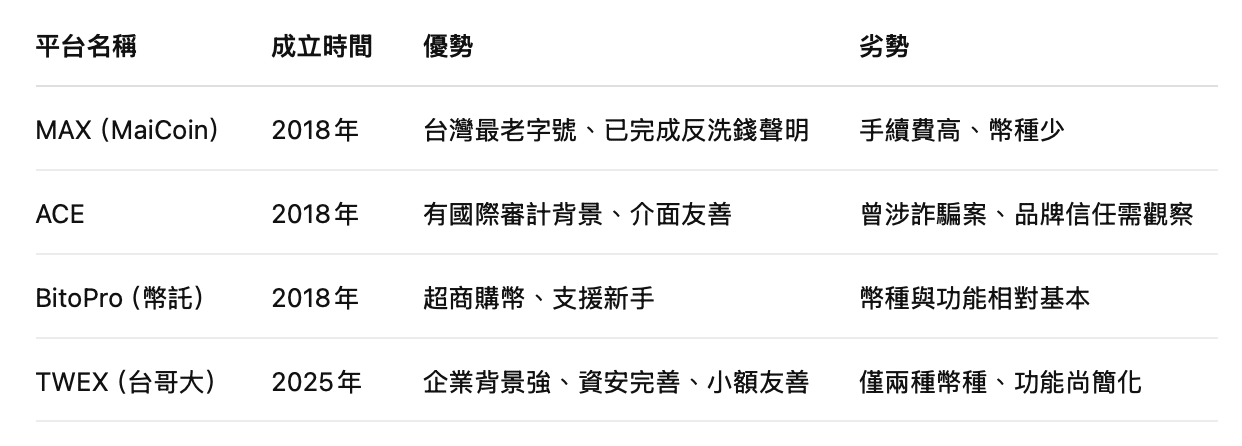 💡這些平台各有優勢,也有不同程度的風險與限制,請依照自己的目標、風險承受度來選擇適合的平台。